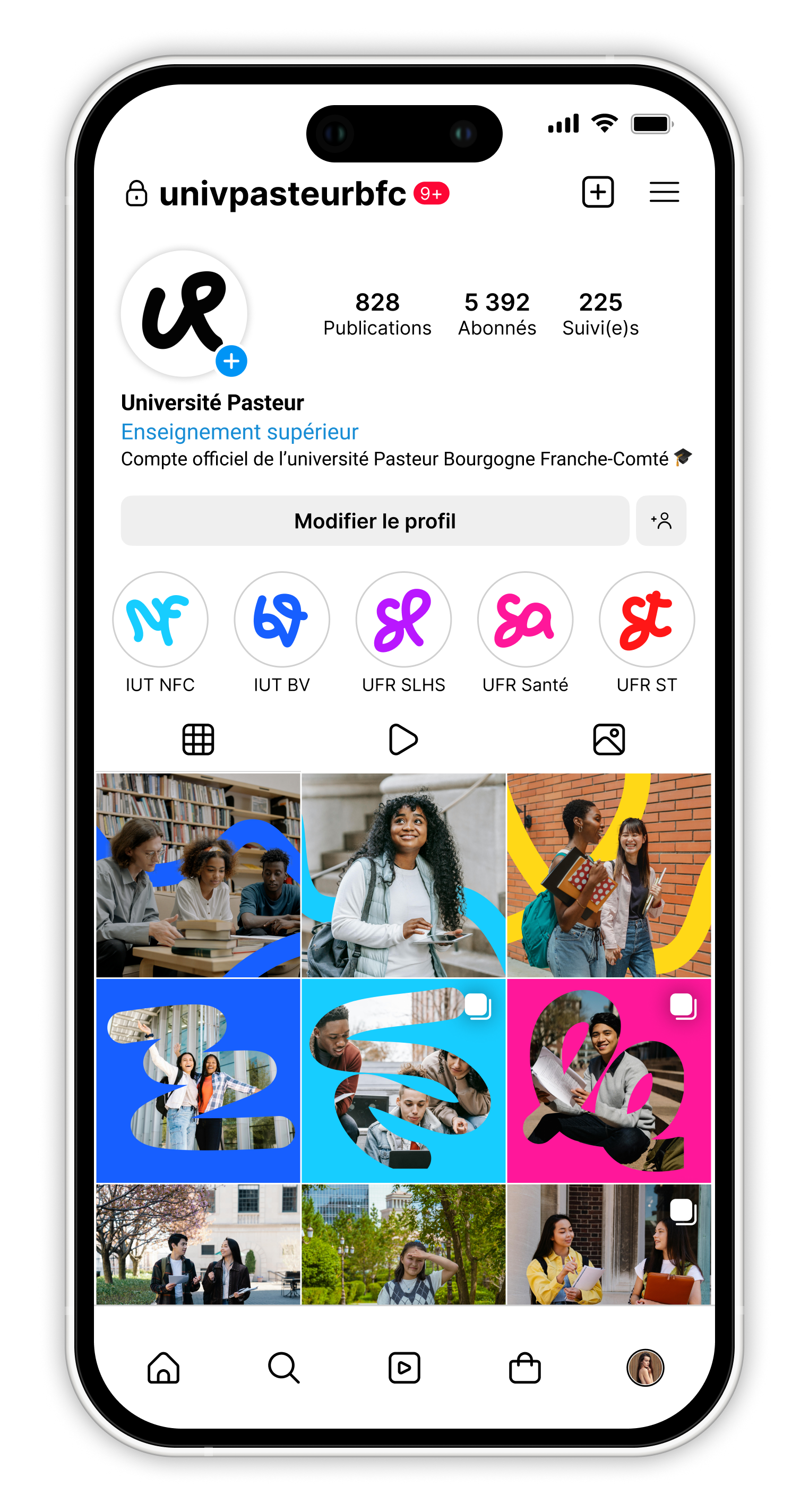J’ai choisi quelque chose de moderne et créatif reflétant l’innovation et la diversité de l’université. Les formes style dessiné main et arrondis pour une sensation de dynamisme et d’accessibilité, et les formes colorées et motifs pour exprimer l’esprit étudiant et l’originalité.